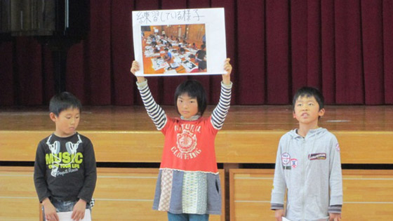 東小田小3年生との交流会で、三並小の学校行事を紹介しました(3年)