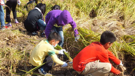 6年生と一緒に稲刈り