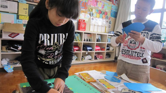 みなみの里の紹介ポスター作りの様子(6年)
