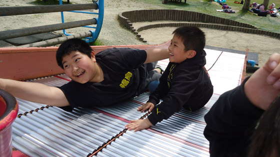 夜須高原記念の森への遠足です。歩く、食べる、遊ぶをたてわり班で行い、みんなの絆が深まった一日でした。