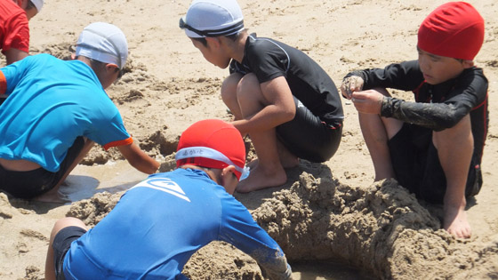 当日はお天気にも恵まれ、1年生から6年生まで(先生も)、それぞれの「海」を楽しんでいました。