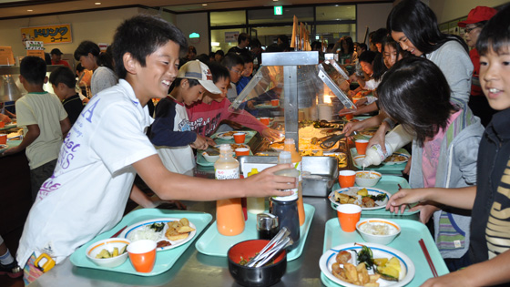 夕食は、食堂でバイキング。一日の疲れも吹っ飛びます。