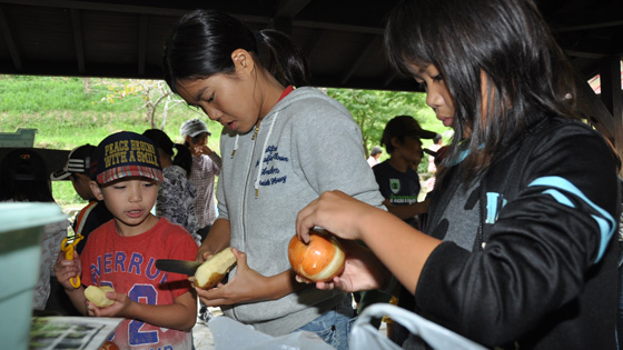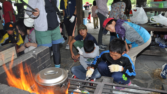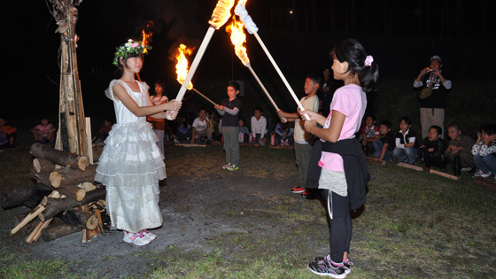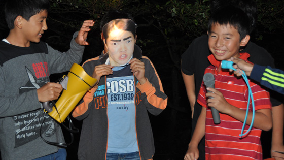 夜はお待ちかねの「キャンプファイヤー」。各班からの出し物で盛り上がりました。