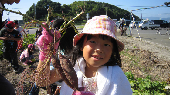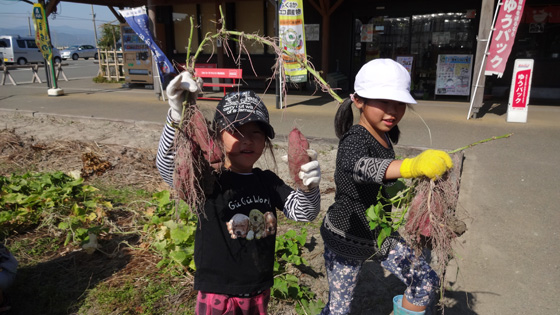 すくすくと、大きく育ったサツマイモ。掘り出すたびに、子どもたちの歓声が響きました。