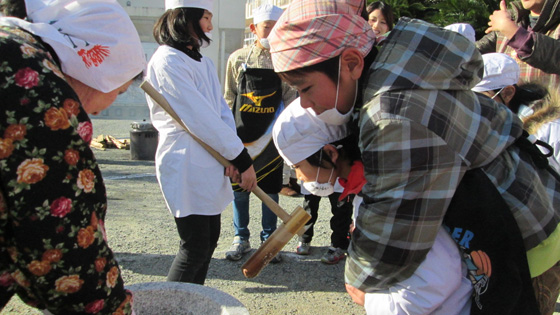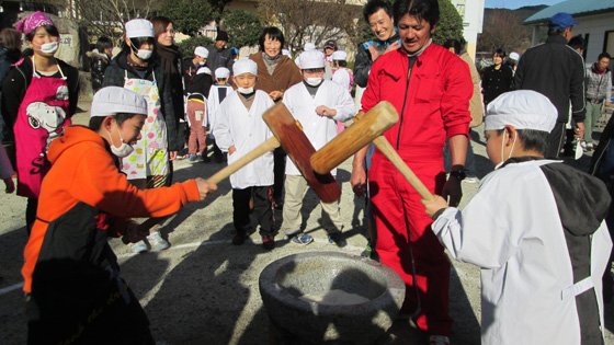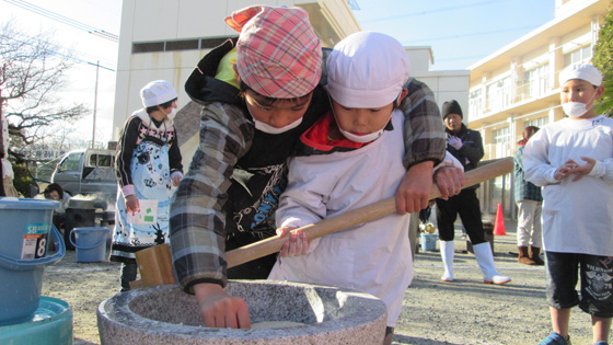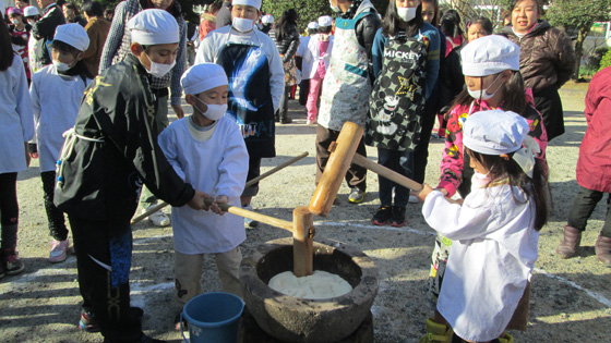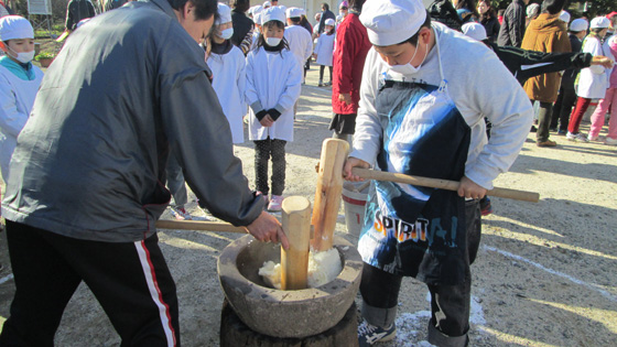 18日(木)に、PTA主催のもちつきを行いました。本年度は全校児童が参加しました。