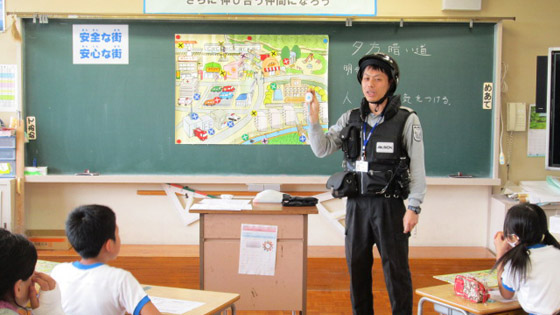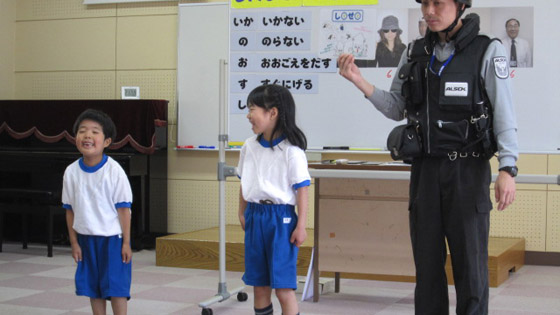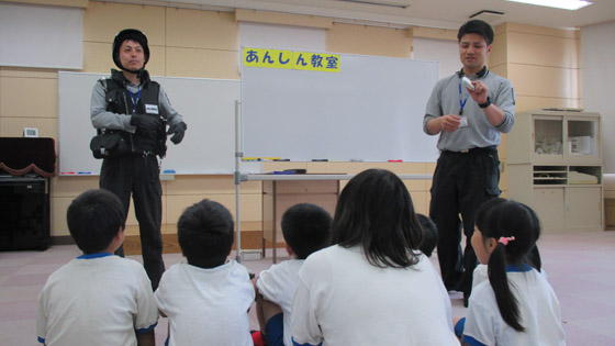 警備会社の方に講師できていただき、安全教室を行いました。