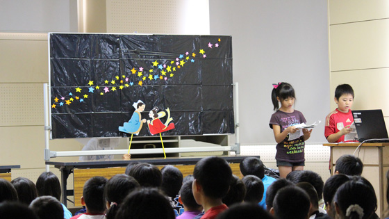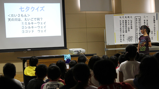 情報委員会の主催で七夕集会が行われました。練習してきた「七夕」のペープサートも上手に発表でき、七夕の雰囲気が盛りあがりました。校長先生からも「願いごとがかなうように,がんばりましよう。」とお話がありました。