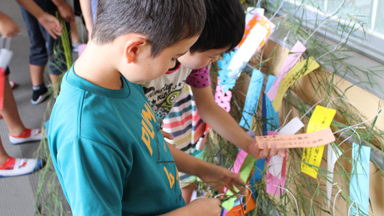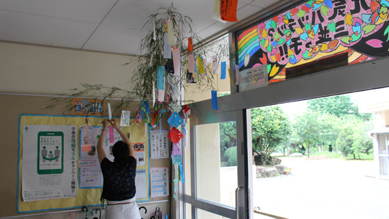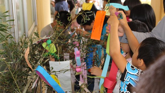 集会の後、それぞれ用意した短冊を「願い」をこめて飾りました。