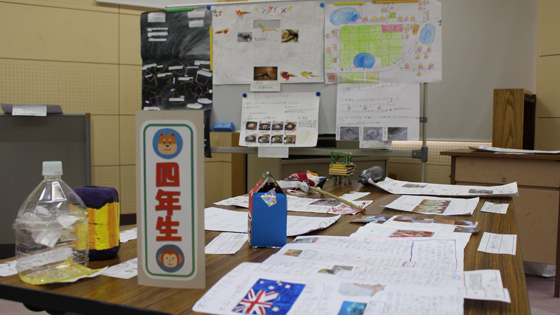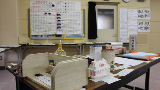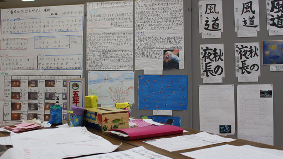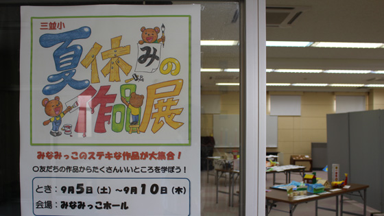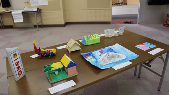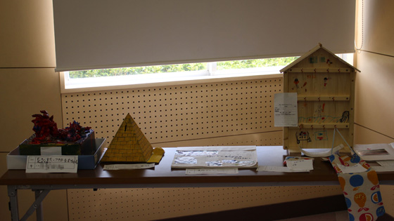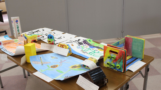 工作・習字・自由研究等々、全校の子ども達の夏休みの学習の成果を展示しました。展示を見学した子ども達は、「すごい、じょうず」「時間かけてやったんだ」「どうやってつくったの」などと声を上げていました。お互いに展示作品に刺激されているようでした。