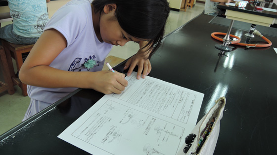 一番びっくりした授業は英語です。小学校は英語のあとに日本語で話してくれるけど、中学校は英語のくり返しで難しかったです。はじめはついていくのがやっとだったけど、ゲームをはじめるときにはもうなれてきて、楽しんでやることができました。かくこともできたのでよかったです。