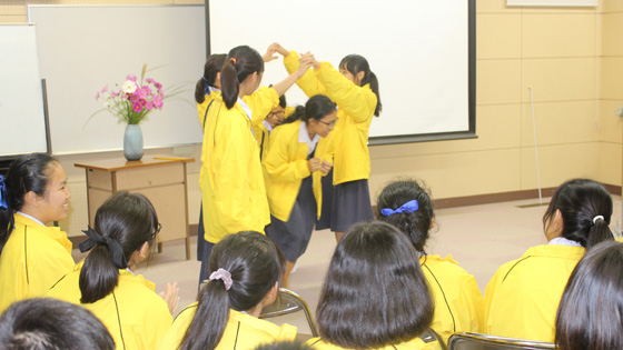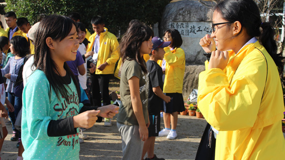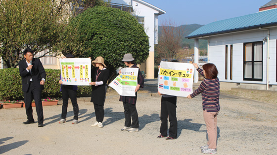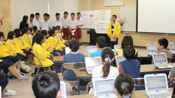 文部科学省の交流事業で国立夜須高原青少年自然の家を訪れている、タイ王国の高校生が三並小に来てくれました。