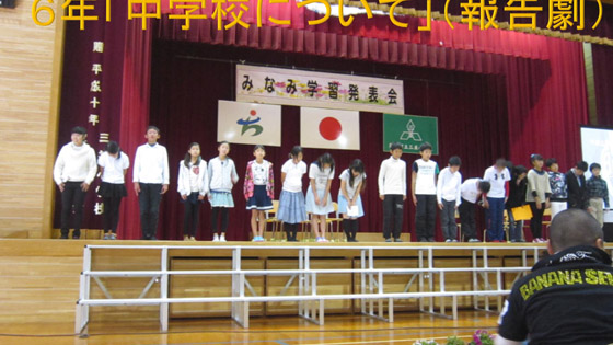 全校での気持ちをひとつにした合唱「みなみ」からはじまり、企画委員のスムーズな進行のもと、各学年の発表が行われました。