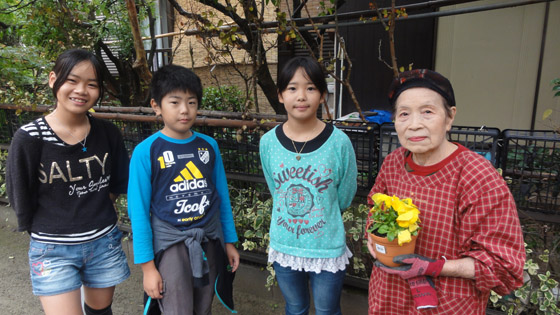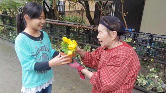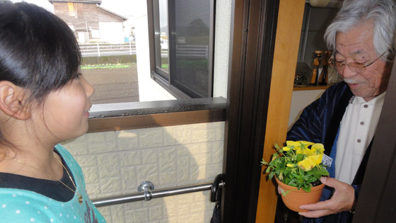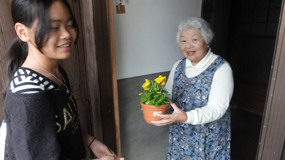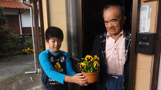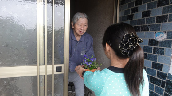 「いつもお世話になっています。花を飾って下さい。」と恥ずかしそうにわたす子ども達でしたが、地域の方が喜ばれる顔を見て心の中が暖かくなったようです。つぎへの「つながり」に更に深まっていくことでしょう。