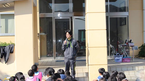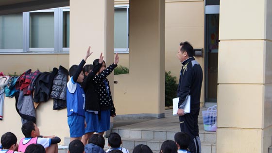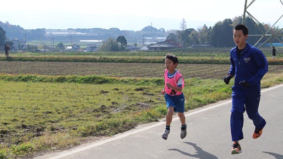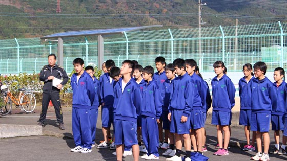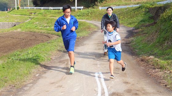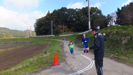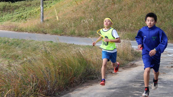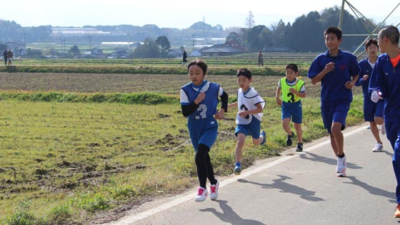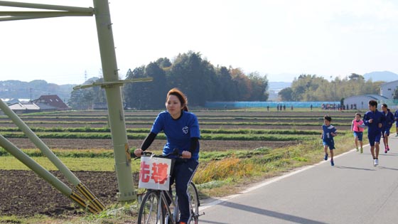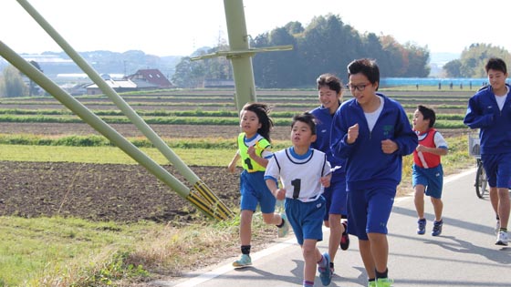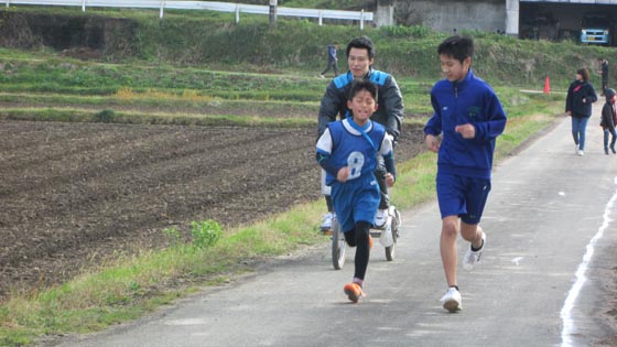 当日は、夜須中学校陸上部とバスケット部の生徒が応援に来てくれ、分担して児童に声をかけながら、伴走してくれました。