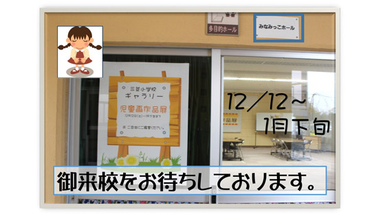 という声を保護者からいただき、みなみっこホールに「三並小学校ギャラリー」を開設し、全児童の作品を展示いたしました。