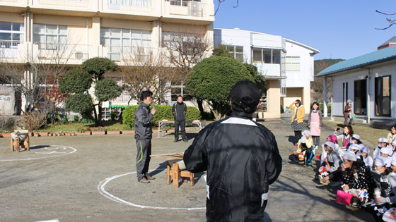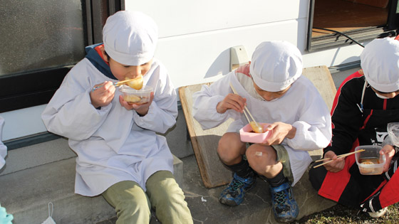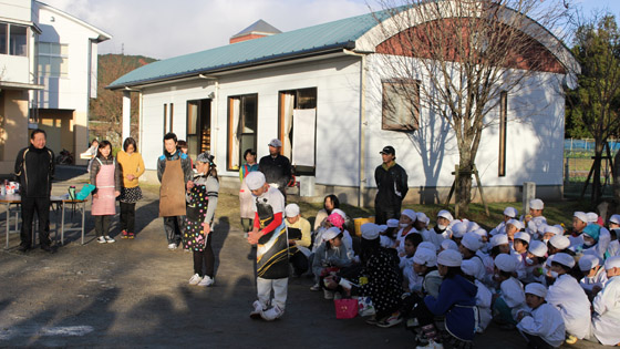 朝から雪まじりの雨が降る天気で、できるかどうか心配でしたが、子ども達の登場とともに見事に晴れ上がりました。