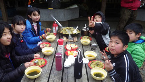 〜生活力アップ!三並小の仲間とチャレンジ6日間!!〜をテーマに国立夜須高原青少年自然の家にて、4,5,6年生の希望者が参加して行われています。平日は「夜須高原」からバスで学校の近くまで送迎してもらい、歩いて学校に登下校します。