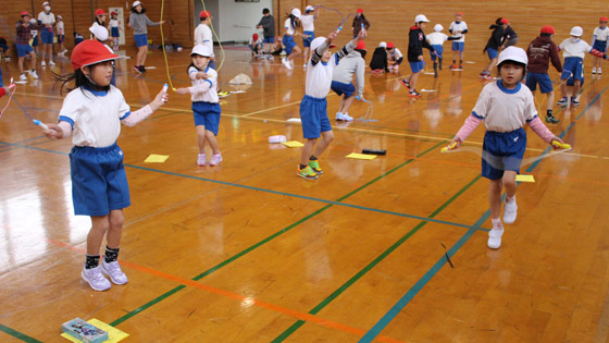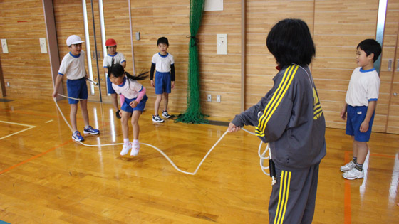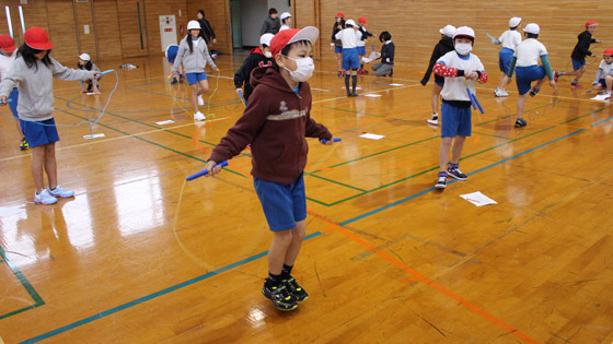 自分の目標に向かって、リズムよく跳ぶことや難しい技にチャレンジし「なわとびチャレンジカード」に記録しながら、がんばっています。まとめの「なわとび大会」も行う予定です。