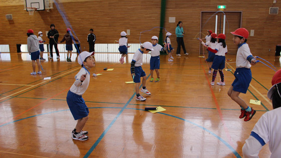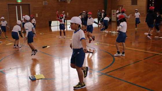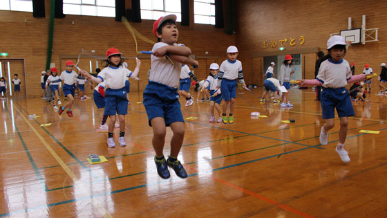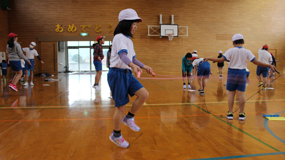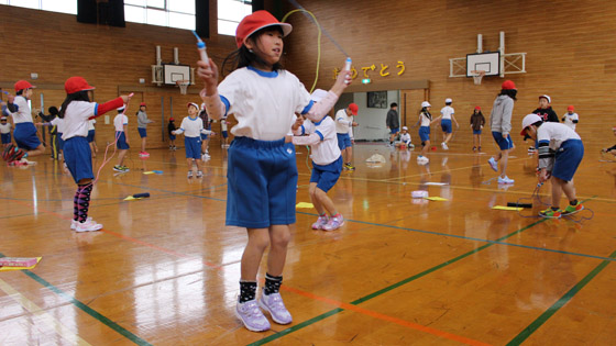 業間活動のひとつとして、体力向上をめざし、3学期は「なわとび」にチャレンジしています。