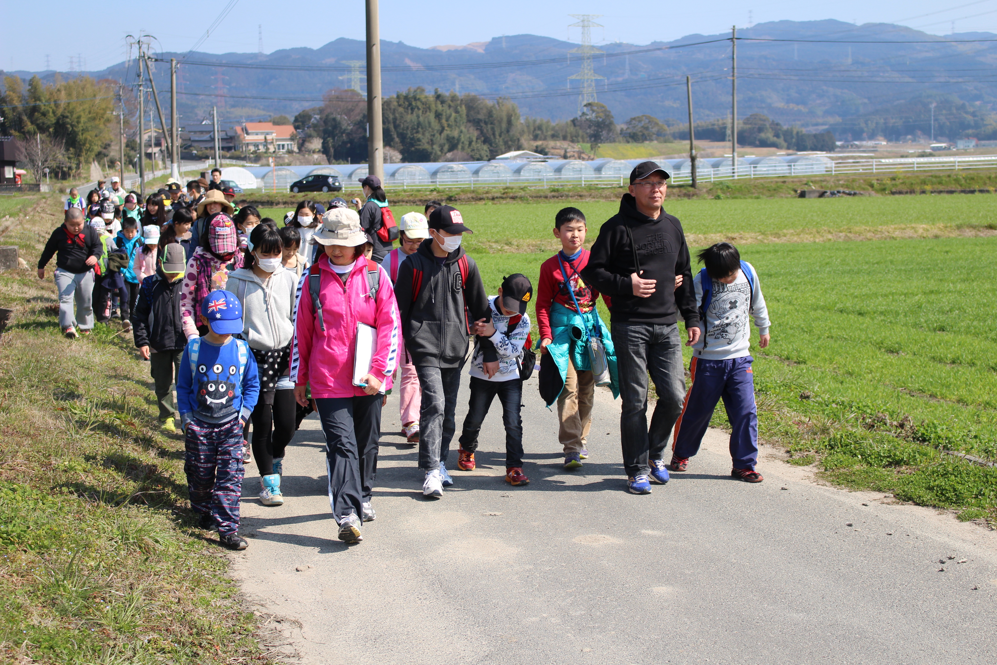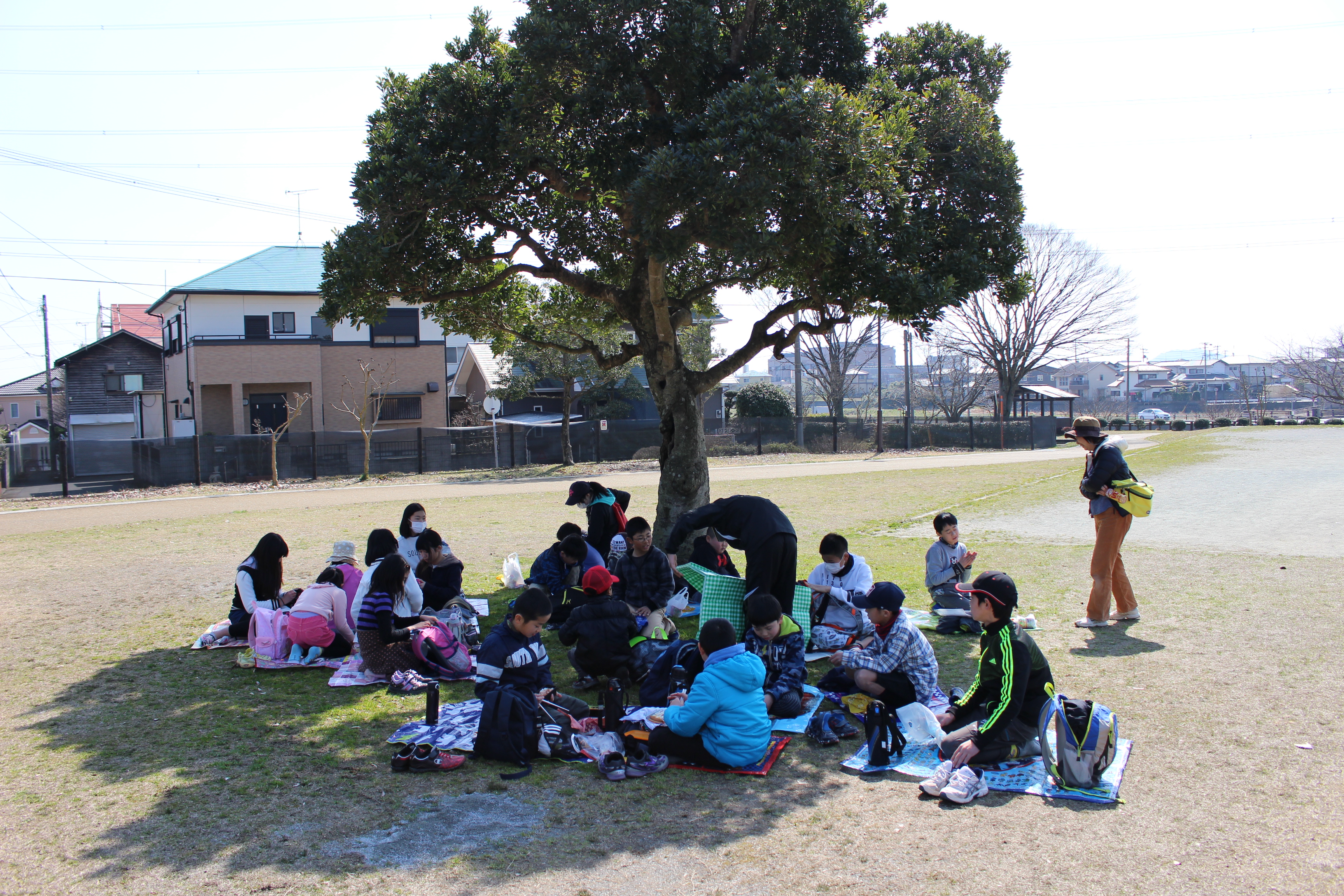 また、天気にも恵まれ絶好の遠足日和となり、目的地の安の里公園でも昼食、自由時間、レクレーション等楽しく過ごすことができました。特に、レクレーションの時の5年生が企画してくれたゲームにみんなが盛り上がりました。