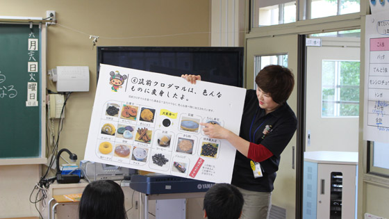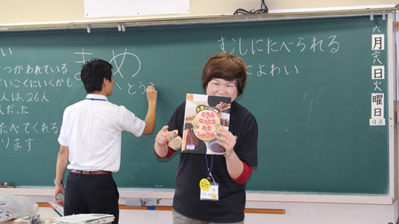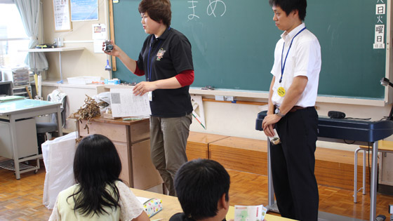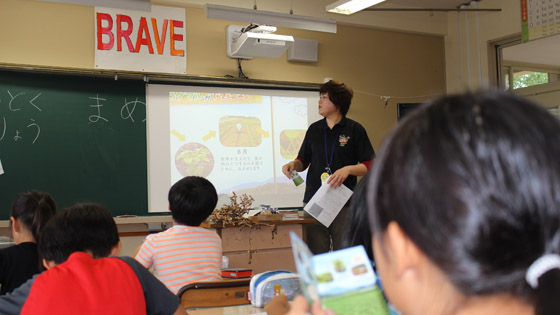 その学習の一環として町農林商工課特産振興係の松澤さんと、真鍋さんに来ていただきお話をうかがいました。