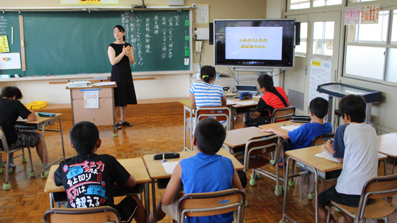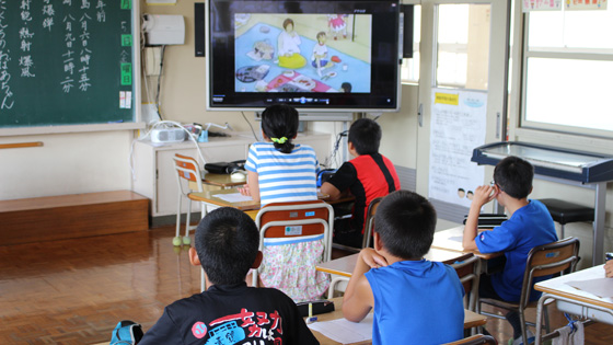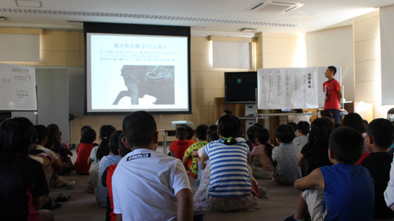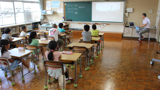 毎年出校日では平和に関する学習を行います。1時間目は各学年で学習し、2時間目には全校集会を行いました。