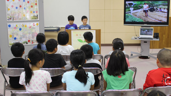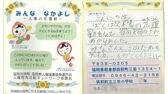 今年度3,4年生で取り組んできた「人権の花」の閉会式を行いました。たくさんのご来賓をお迎えして、まとめをすることができました。