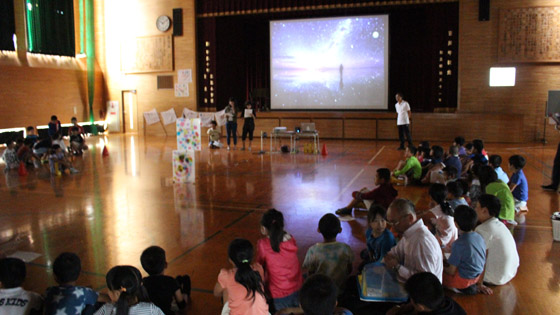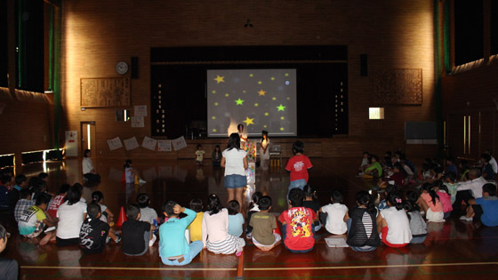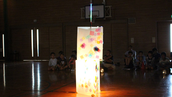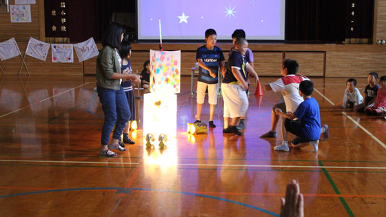 そのがんばりを生かしたく、火は使えませんが、ライトを使って「光のつどい」を行いました。1,2年生も参加し、全校児童で「光台」を囲んで思い出づくりができました。 期間も短く、会場も薄暗い体育館という条件でしたが、子どもたちも職員も精一杯、準備に本番にがんばりました。