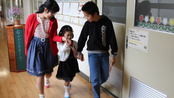 優しくお世話をする新6年生