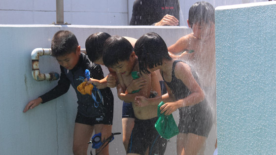 上級生がピカピカに磨いてくれたプールで、みんなが楽しみにしていたプール開きが行われました。冷たいシャワーやプールの水に大はしゃぎの子ども達でしたが、今年の水泳学習のめあて発表では、どの学年もしっかりと目標を掲げてやる気が感じられました。