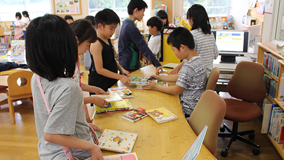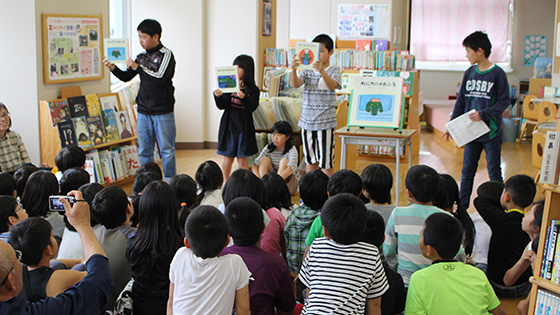 ミニお話会の後には、みんなで本の借り換えをしたり、本を読んだりと、子ども達も先生も読書を楽しむよい時間になりました。