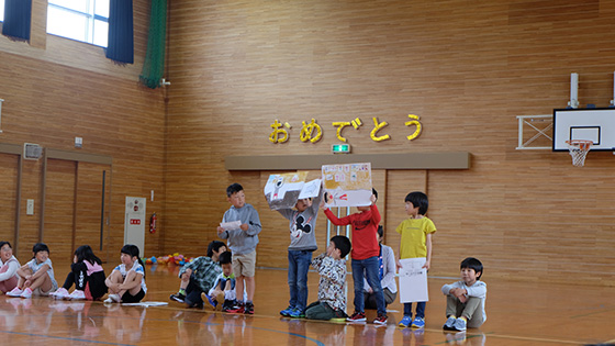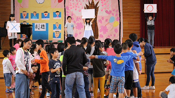 歓迎集会では、1年生の自己紹介や、2~6年生からのクイズありダンスありの楽しい出し物、企画委員会からの〇Xクイズやじゃんけん列車で、とても盛り上がりました。