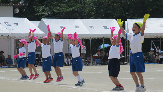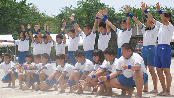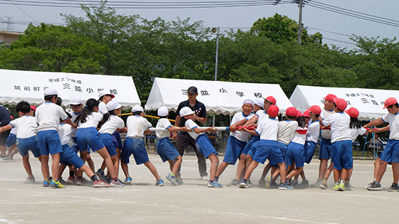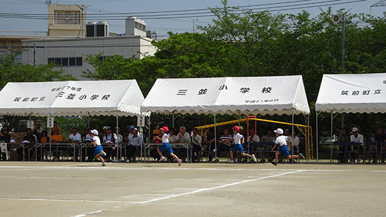 三並小学校は、地域参加型の運動会です。保護者の皆様をはじめ、地域の皆様、ご来賓の皆様、そして子ども達の、笑顔あふれるアットホームな運動会です。また、地域の方々やご来賓の皆様には、三並小学校のおいしい給食も食べていただいています。