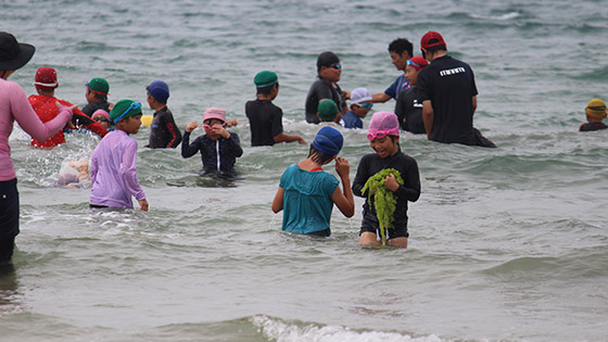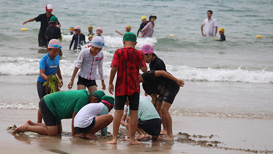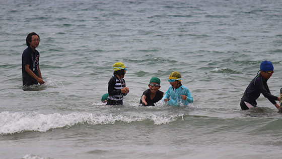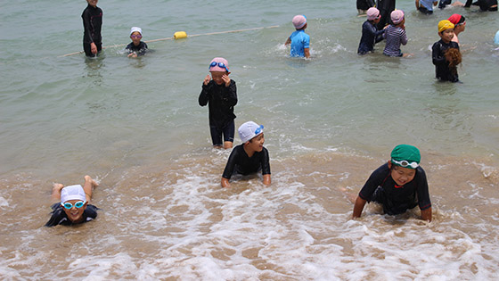 普段緑いっぱいの自然の中で育つ子どもたちにとって、この「臨海学校」は、毎年とても楽しみにしている行事です。
