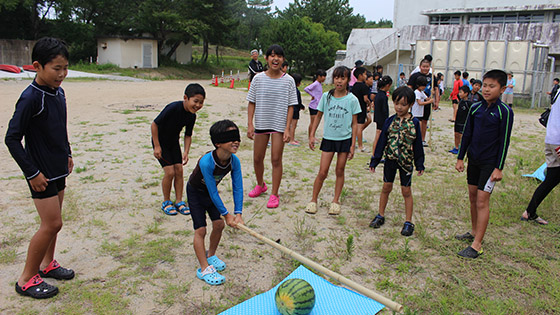 海で泳いだり、砂浜で遊んだり、縦割り班でスイカ割わりをしたりと、海を満喫した楽しい1日になりました!