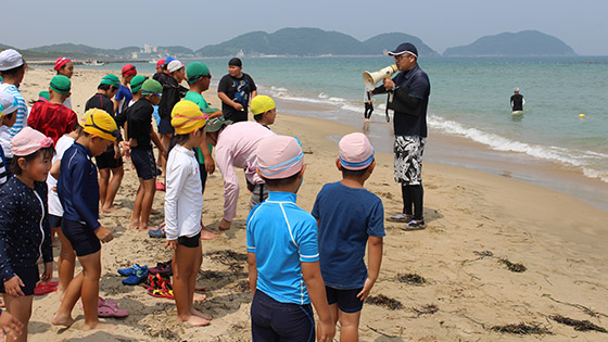 7月17日に福岡県少年自然の家「玄海の家」に、全校児童で海水浴に行きました。