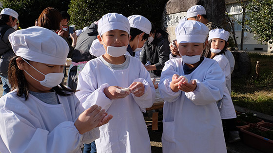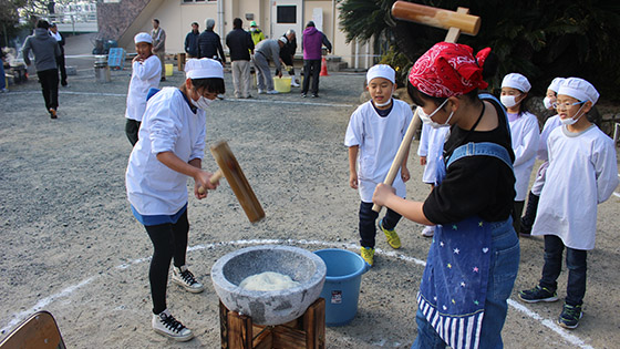 餅つきをするにあたり、保護者の皆様を始め、地域の皆様にも、早くからたくさんの準備やサポートをしていただきました。本当にありがとうございました。