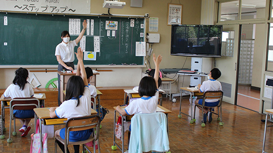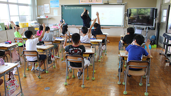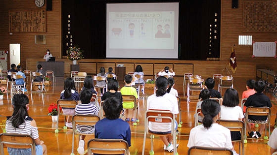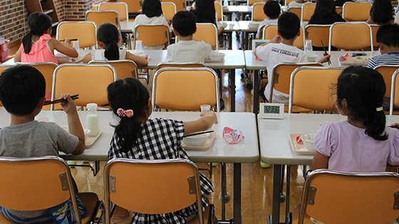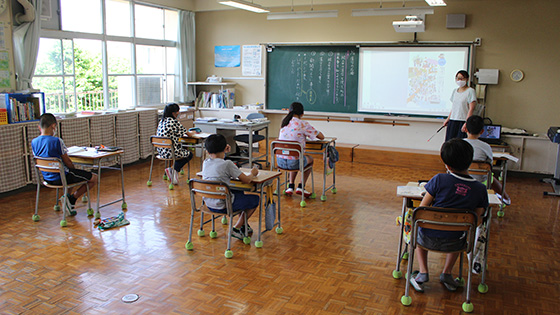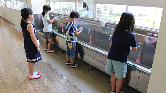 教室では、距離を保ちながら学習をしたり、給食は、ランチルームと教室に分かれて、前を向いたまま食べたりと、今までとは違う生活スタイルですが、密にならないように様々な工夫をしながら、元気に楽しく学校生活を送っています。