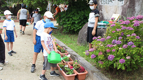 また、三並小伝統の「縦割り活動」もスタートし、6年生のリーダーシップのもと、みんな張り切って、掃除や、花の水やりなどに取り組んでいます。