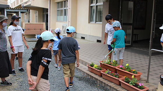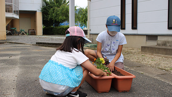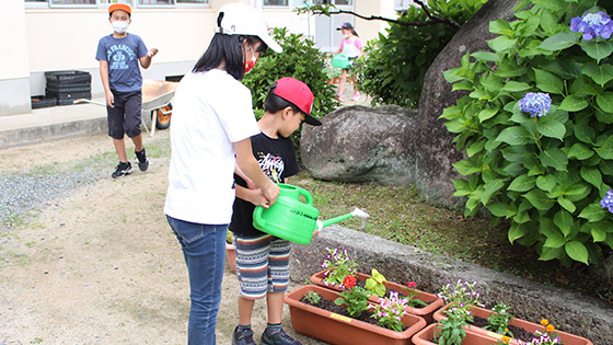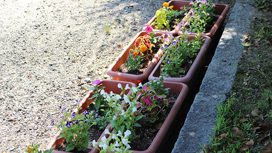 植えたお花は、全児童が交代で毎朝水やりをしてお世話をしています。桜が有名な三並小ですが、子ども達が愛情をたっぷり注いで育てているお花たちも、とってもきれいですよ!