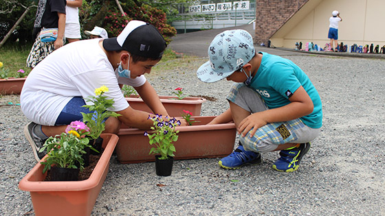 最後は、6年生で花壇の花植えをしました。昨年、3月に予定していた花植えが、休校の影響でできなかったので、今まで以上にはりきって取り組んでいました。