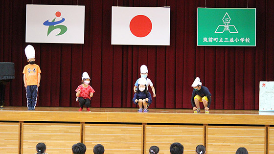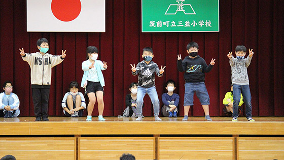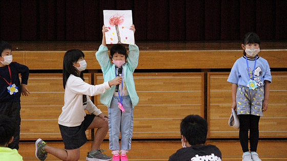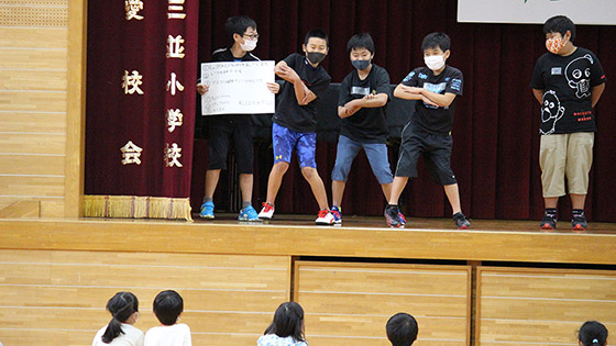 歓迎集会では、1年生の自己紹介や、2〜6年生からのクイズありダンスありの楽しい出し物で、とても盛り上がりました。