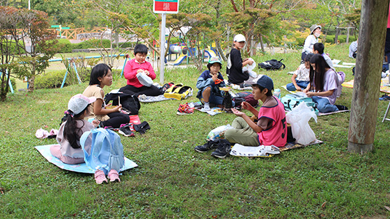 お天気に恵まれ、たてわり班で協力しながら、4キロコースに挑戦しました。下級生にとっては少し長い距離でしたが、中間地点の「夜須高原記念の森公園」でお弁当を食べたり遊んだりしてリフレッシュ!上級生を中心に、みんなで励まし合いながら、全員無事にゴールすることができました!!
