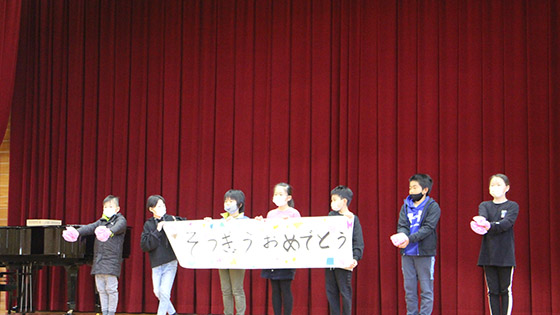 急に春めいた気候になった3月10日(金)に6年生お別れ集会を開催しました。