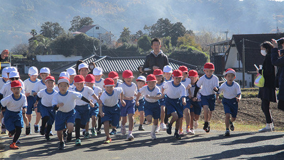待っている学年の友達の応援の声が響き、互いに励まし合いながらの持久走大会でした。スタートでは、緊張していた1年生もゴールまで走り抜いたあとは、ホッとした顔になっていました。