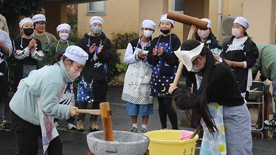 12月19日(木)に、PTA主催のもちつき大会を行いました。天候が心配されましたが、無事に全校でもちつきを行いました。