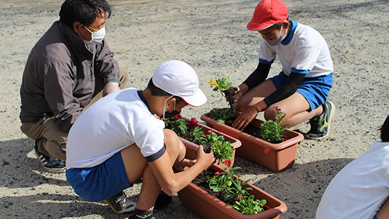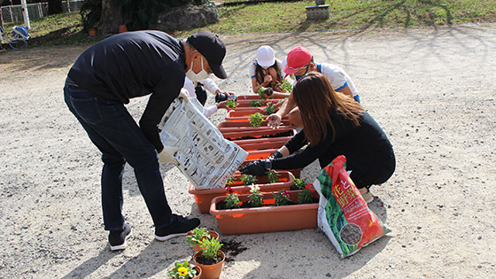 そんな中でも、地域の皆様の見守りのおかげで、子どもたちは、コロナに負けず、心も体もすくすくと元気に成長しています。直接会うことはできなくても、この花植えの取り組みで、地域とのつながりを大切にしたいと考えています。